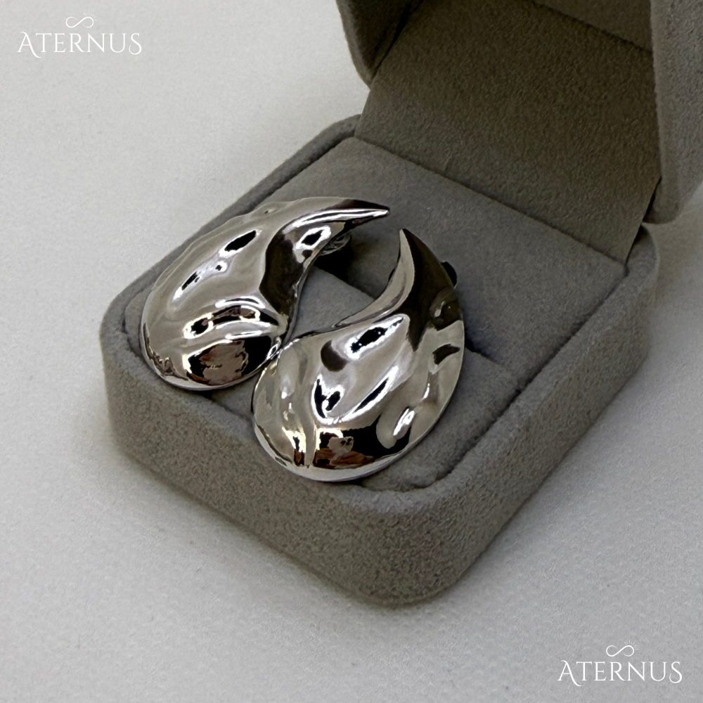 Brinco em formato de gota lateral com textura marcante e visual moderno. O banho de ródio traz sofisticação contemporânea.